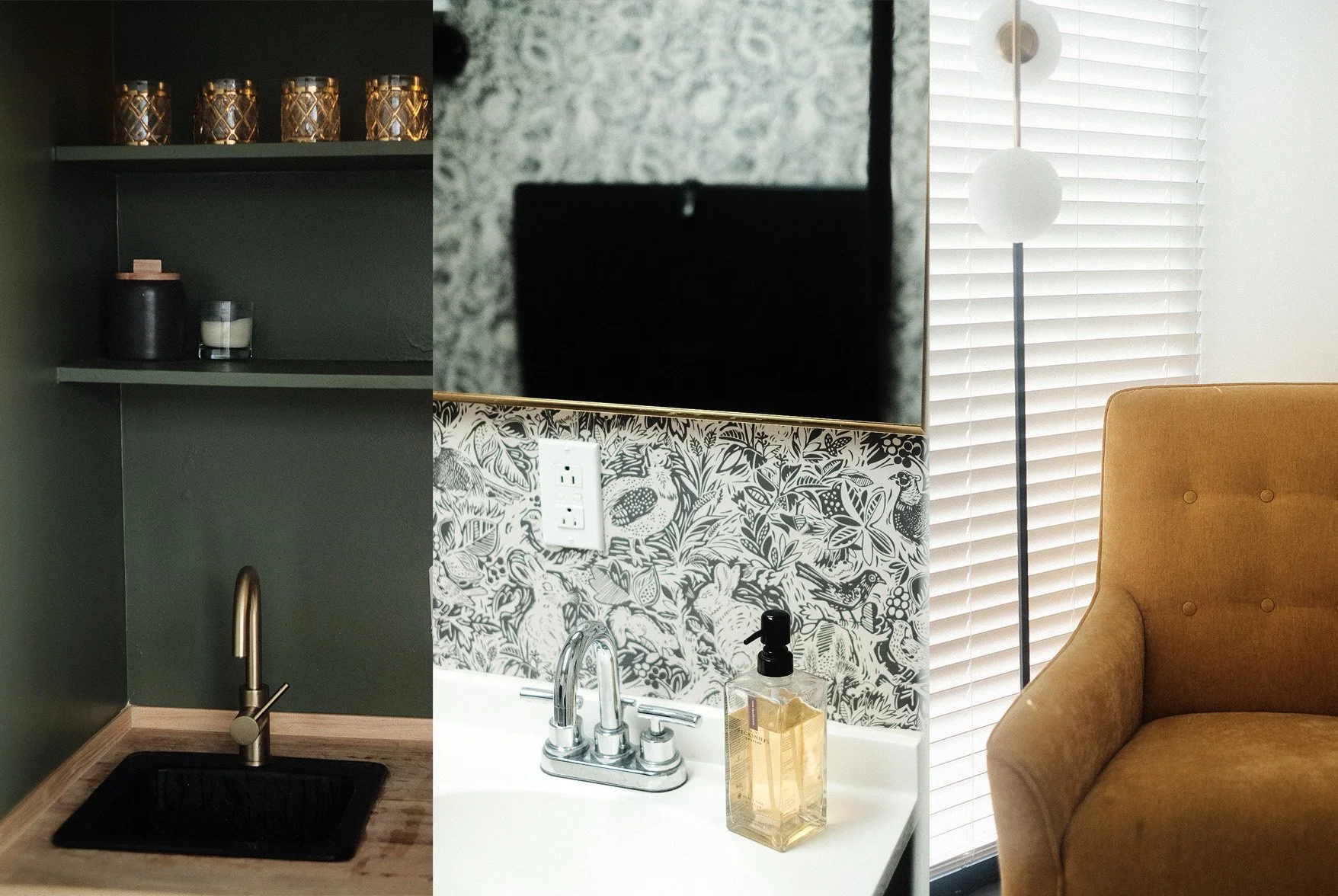 Our flex room is the perfect mix of cozy and utility. This space is just off the dressing room and kitchenette which makes it the perfect location for your team to hang or set up. The flex room has great natural light and is the perfect spot for portrait and product sessions.